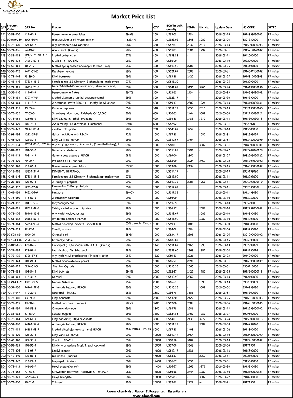 Senarai Harga Pasaran Odowell-2026.3.1-2026.3.31